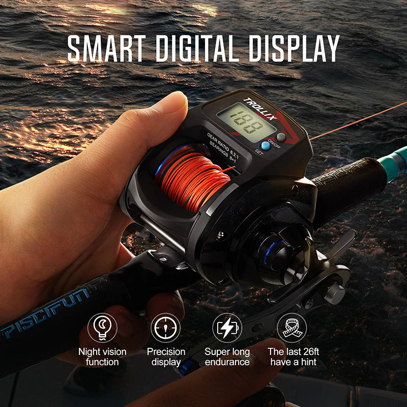 Piscifun® Trollix LCD Line Counter Digital Reel, 6.2:1 Trolling Fishing Reel Sale