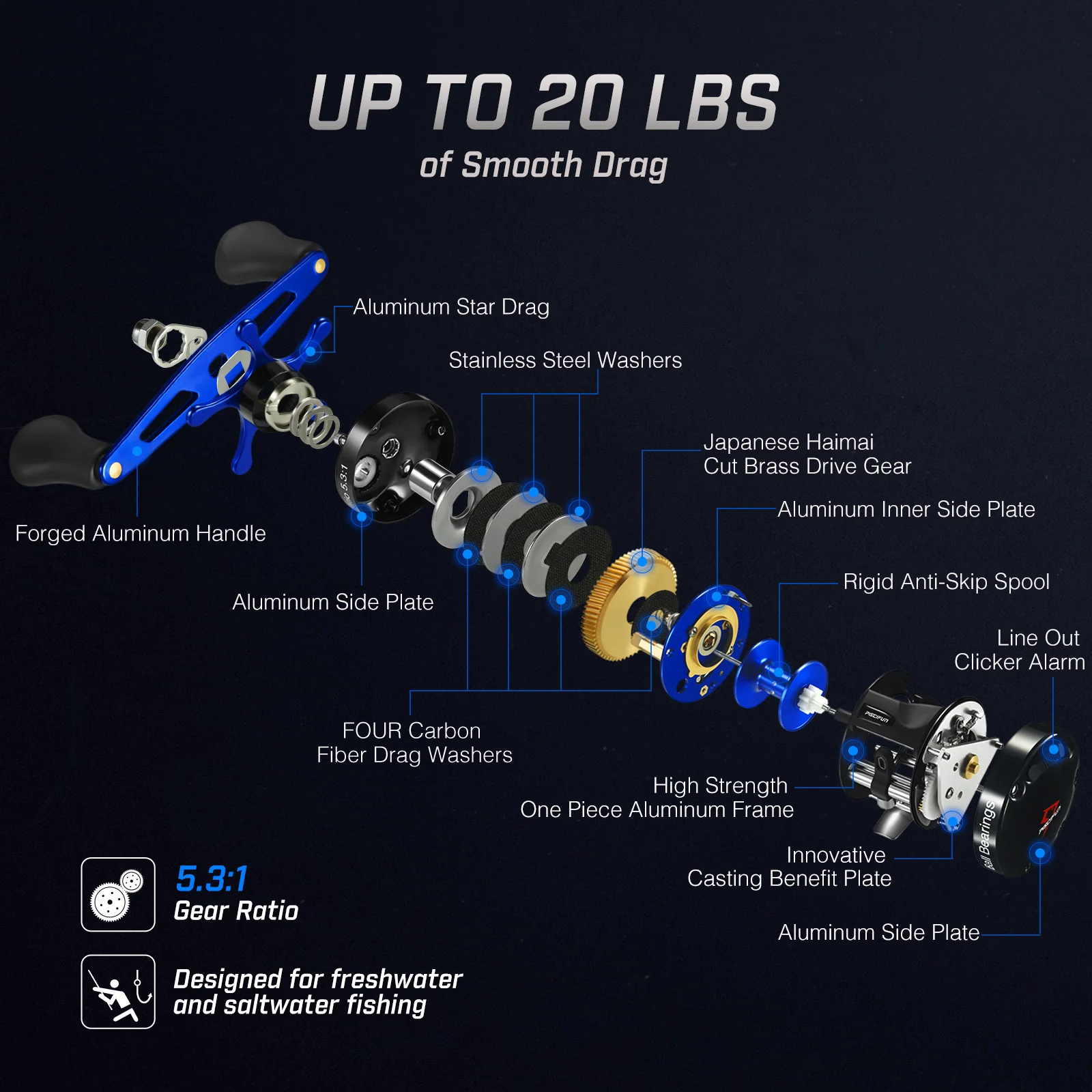 Piscifun® Chaos Pro CNC Baitcasting Reels and LED LumiCat II Casting Rods Combo